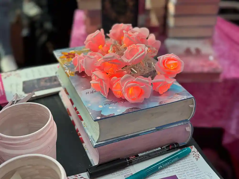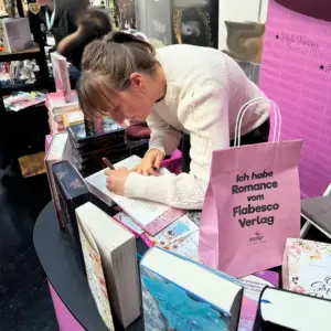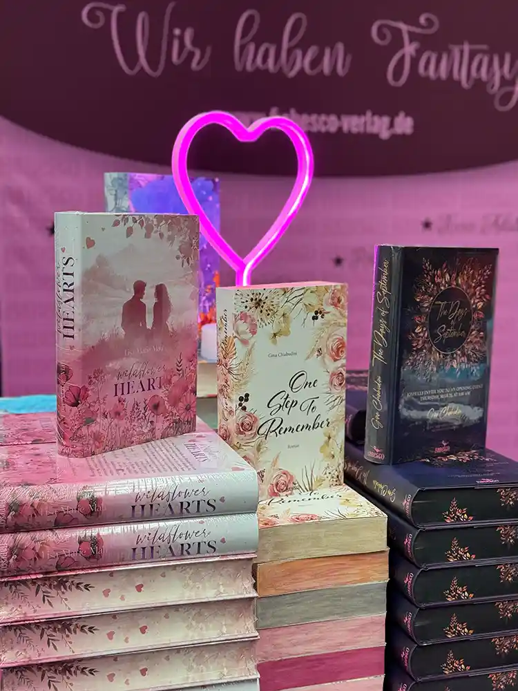 Die Messe war für uns eine ideale Gelegenheit, die Vielfalt unseres Verlages zu zeigen. Besonders viel Aufmerksamkeit erhielt in diesem Jahr unsere Neuerscheinung aus den Bereich Romance – Wildflower Hearts, aber auch vertraute Titel (The Days of September, One Step to Remember, Im Land der vergessenen Erinnerungen, Lysander – Die Legende von Elysion) aus unserem Programm fanden erneut großes Interesse. Viele Besucher nahmen sich Zeit, in die Geschichten hineinzulesen, Fragen zu stellen oder direkt am Stand ein signiertes Exemplar mitzunehmen.